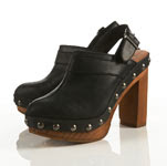 It hasn’t been easy. After encounters in Dune, Kurt Geiger and several other shoe shops I award Topshop the prize. Their sage sling black clogs are practical and stylish, and comfortable thanks to the effective buckle strap round the back of your heel. I picked them in black (sophisticated and versatile) although a similar pair are available in brown.