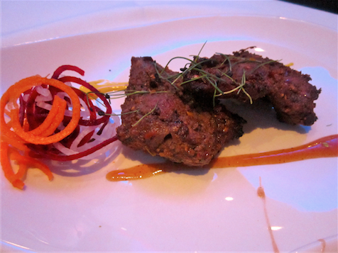 Luckily I ate at Gymkhana a month ago when there was a buzz about ‘a new Indian restaurant revelation’ but before the hype had completely consumed us all. Inspired by the colonial Indian gymkhana clubs, this venue hopes to encourage visitors, in the same way, to socialise, dine and drink. The room is beautiful, a warming wooden interior with atmospheric lighting from Jaipur wall lamps, cosy booths with marble tables and leather banquettes.