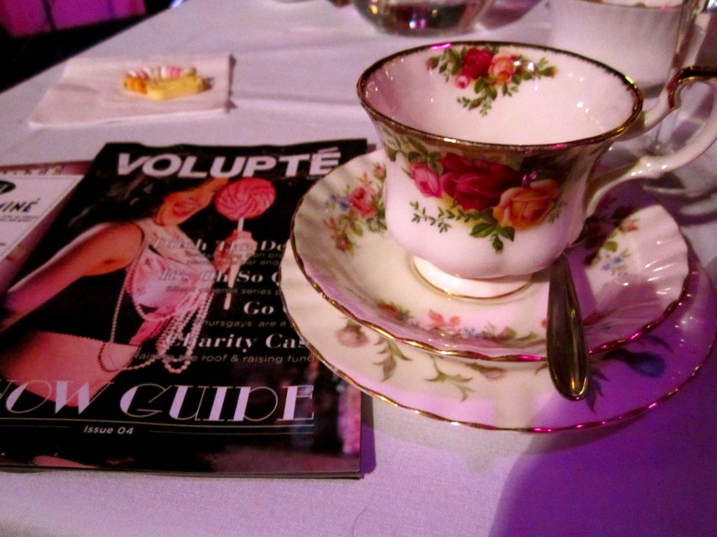 The theatre itself is divinely sensual, circular tables glow with flickering lights and waiters skim the floor offering drinks. There is a hushed romantic feel in the crowded sea of audience and a great sense of friendship amongst visitors as groups share tables, chat and squeal throughout the show. We were sat next to a group of lovely ladies who insisted on topping up our champagne flutes and giggling with us at the daring acts.