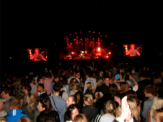 Groove Armada were my Saturday highlight. Bursting onto the stage with energy and charisma, they stunned the crowd with hit after hit and got everyone dancing. Friendly Fires were good too, and looked spectacular thanks to brilliant lighting. From up on the shoulders of a friend, the performance looked amazing. I was shocked to discover how much I enjoyed the House band Booka Shade on the Second Stage. This groovy German duo create contagious beats and twisted tunes which seem to really excite the listeners.