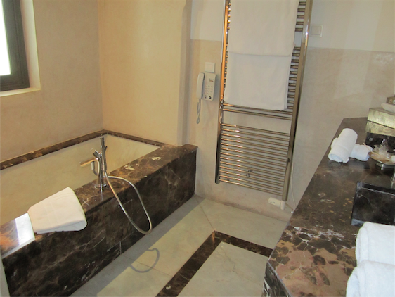 Es Saadi Palace has several restaurants on offer to guests and visitors. La Cour des Lions is worth visiting even if you’re not staying in the hotel. The sophisticated eatery offers French inspired Moroccan cuisine, creative dishes conjured up by genius head chef, Sebastien Bontour. We dressed up specially for the occasion and wandered up at 9pm. The dining room is enthralling with intricate sculpted plaster and atmospheric lanterns; the stylish design is grand yet the arches give a cosy feel. From the window you see breathtaking views of the gardens and Atlas Mountains beyond. It is opulent but avoids being ostentatious. In one corner a musician sits on a leather cushion strumming gently, looking pensive and providing a unique soundtrack for the evening.