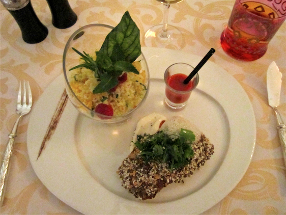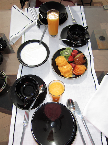 The menu is split into two sections: traditional Moroccan on the left and the wildly creative French-Moroccan dishes on the right. You can mix and match choices, without being limited to one list. We had tried various renditions of typical Moroccan cuisine throughout the holiday so tonight we were very intrigued by the alluring French inspired creations.