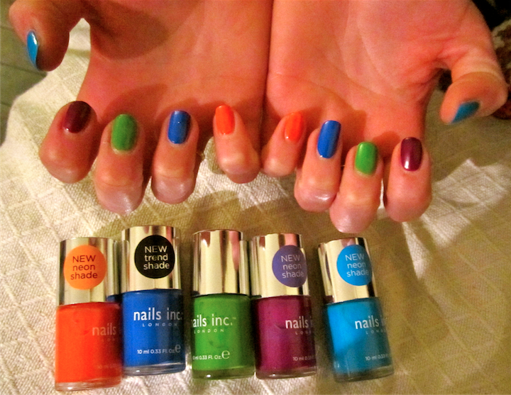 The nail varnishes, though extra bright, also have a creamy texture, and come out thick on the nail so only one or two coats is ever needed. I have always found that Nails Inc are long lasting on the nail and that the colour remains vibrant. I particularly love the orange and blue shades, but I think the five colours would look brilliant painted on each of the five nails of each hand to present a technicolor vision.
