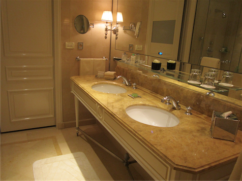The bathroom is incredible in the Opera Suite, the bath is so close to the bedroom you can almost jump from one to the other. A huge bath is accompanied by green bottled Hermes toiletries, ideal for a long bubble bath. Through the doorway, a separate boudoir has two sinks with mirrors, a separate toilet and a separate Hammam shower. The space is bright and airy with natural light streaming in through the windows. Exhausted after trying out all the numerous amenities, I slumped into the gigantic bed, it moulded round my body and enveloped me in immersive sleep.
