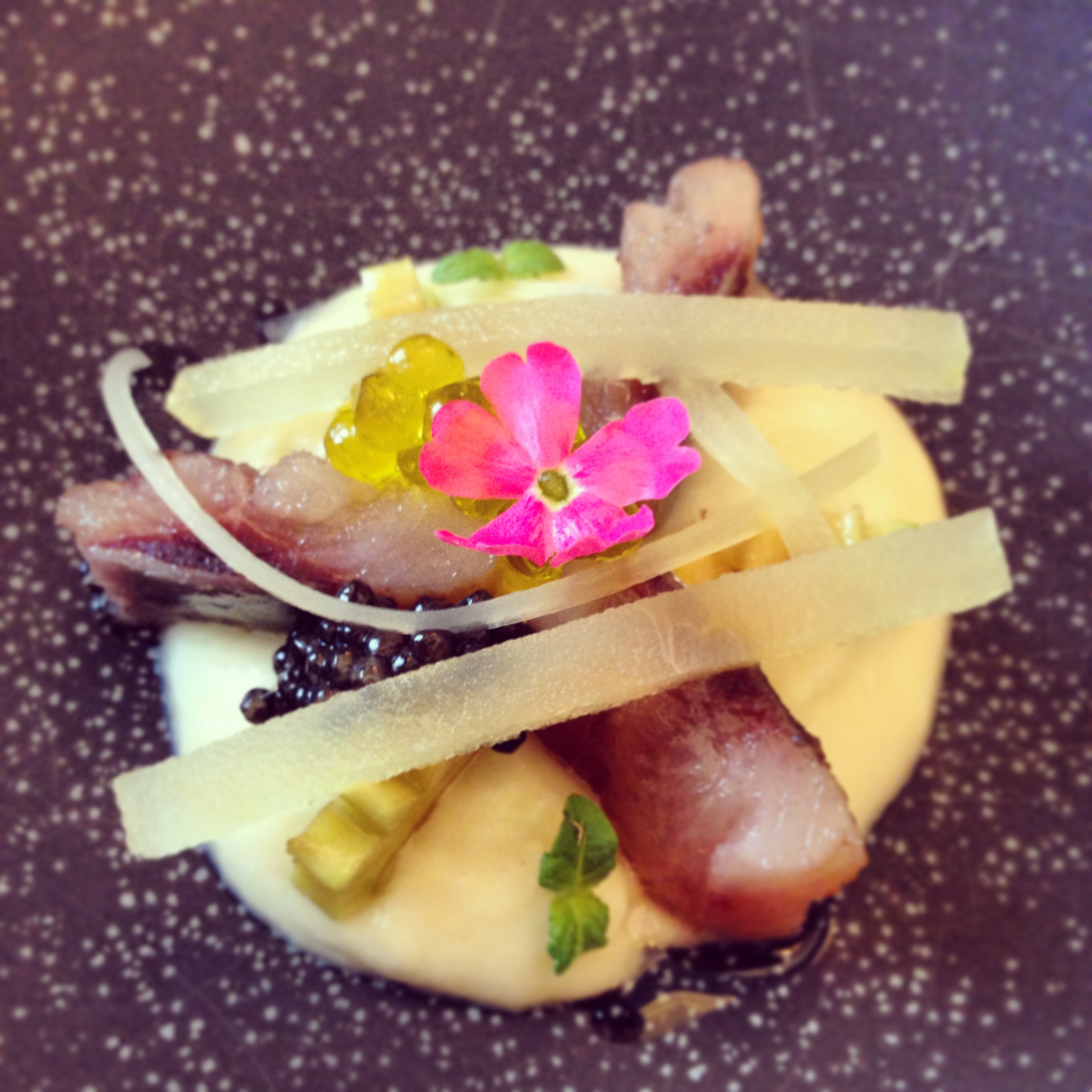Pea ravioli with Iberique dewlap