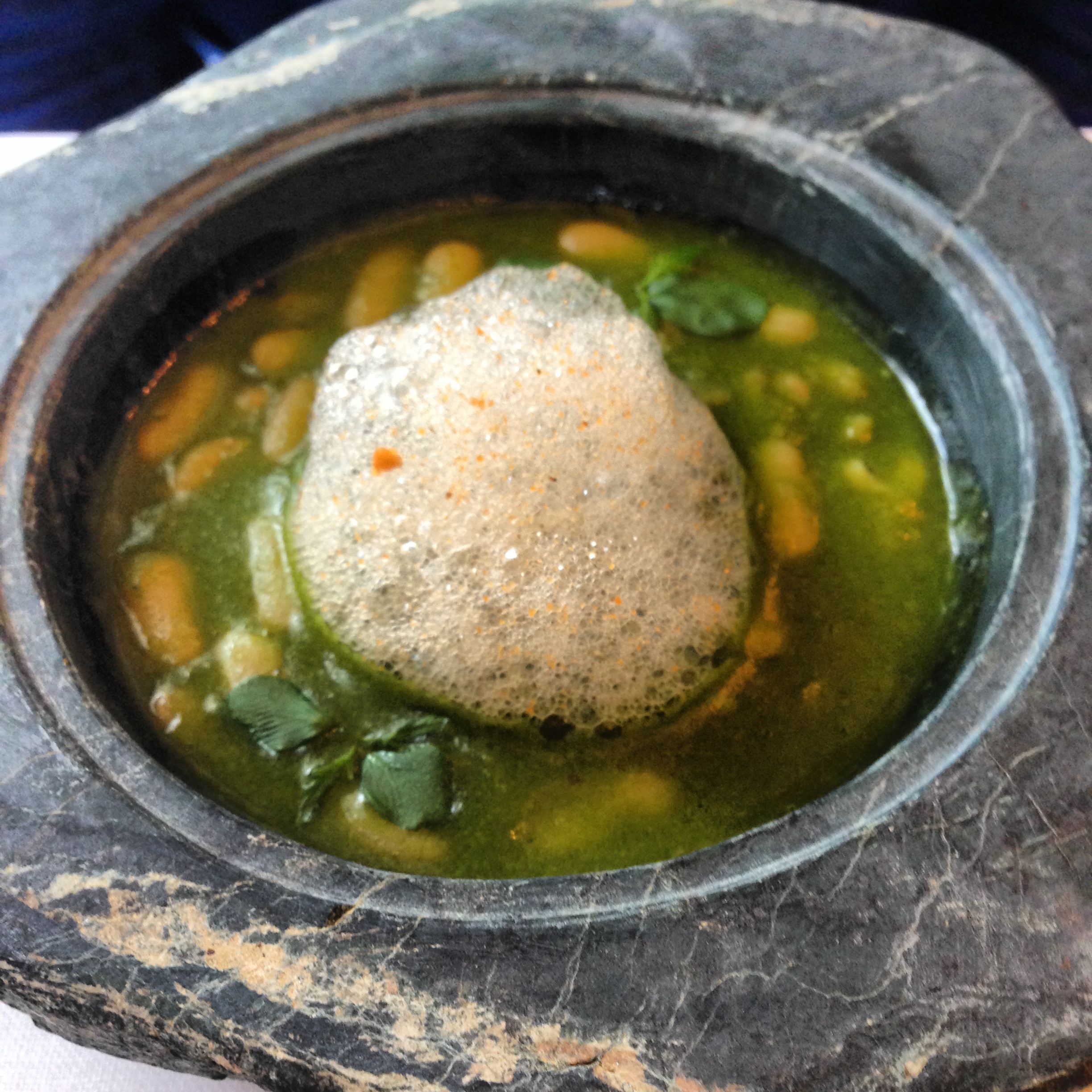 “Verdinas” beans with cockles and sea urchin foam / Onion soup