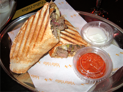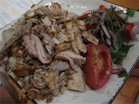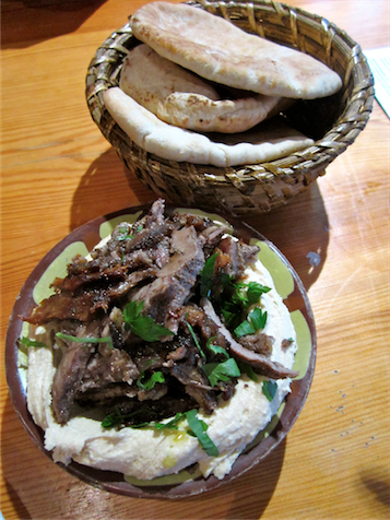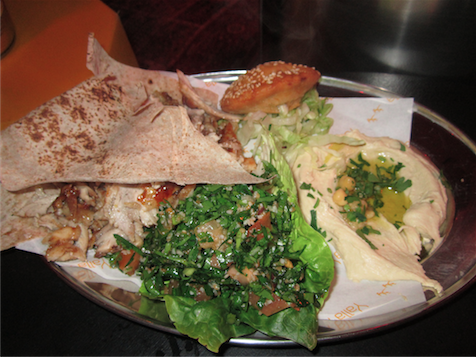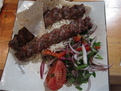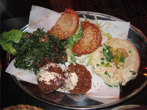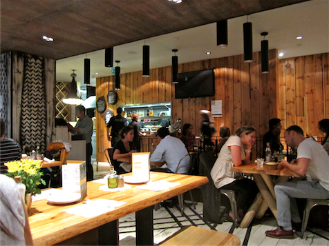 The informal 40 seat space is under a canopy, shielded from the elements with heaters effectively warming diners. It is a mix of tables with stools and low-level cushioned seating. At the weekends belly dancers and live DJs entertain the crowds. The place is decorated with brightly coloured materials and manages to generate a Middle Eastern feel.