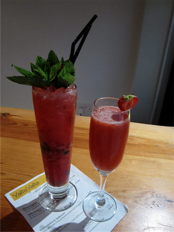 The food is just as good as in the indoor restaurants, but somehow tastes fresher and more vibrant. Mezzes are ideal for groups to share but wraps are better for quick takeaway lunches on the go. I loved the completely addictive chicken sharwarma and was particularly impressed with the extra creamy and smooth homemade hummus and the deliciously crunchy falafel. The real beauty of Beirut food is the combination of all the flavours and textures, which you can mix and match in any way you desire. A short but enticing list of cocktails will quench your thirst and prepare you for a night out in Shoreditch. We particularly liked the refreshing Pineapple Mojito and the fruity Berry Dance Martini.