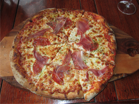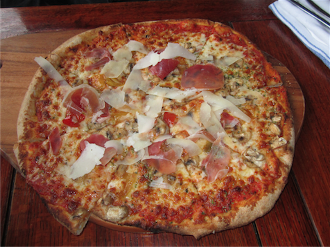 The menu promises that they are low in fat and low in calories, though judging by the quantity of oozing cheese I find this hard to believe. The staff are trained by Francesco Santocono, world champion pizza-maker 2008! Santocono’s pizzas have been described by Angelina Jolie as the best she has ever had, and the menu even includes her favourite toppings, which have been named after her: ‘How to Impress Angelina Jolie’ (olives, goat’s cheese, walnuts, and caramelised onions). We chose the Spaniard (Serrano ham, chorizo, salami, chillies, and mozzarella) sans chilli and the Little Bear (prosciutto crudo, mushrooms, roasted peppers & parmigiano). Our pizzas arrived on rustic wooden boards piping hot and smelling divine. These wood fired pizzas are simple and reasonable, with a wonderful crispy and thin homemade dough base (with a sprinkling of what I suspect was polenta flour) and characterful intriguing toppings. As we devoured them we barely spoke. They were absolutely delicious though benefitted from a little extra seasoning… try a drizzle of their chilli oil or a crunch of black pepper.
