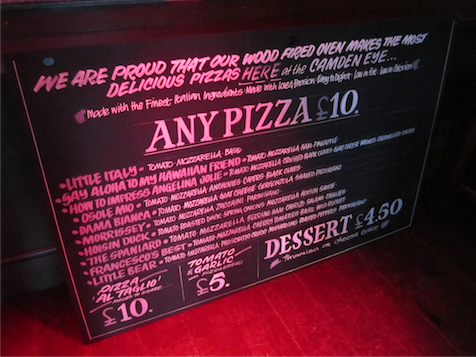 Camden Eye has a lot on offer with numerous signs outside boasting the best grub in the area. The arrival of their new pizza parlour is a very appealing asset offering a quick and tasty lunch upstairs.