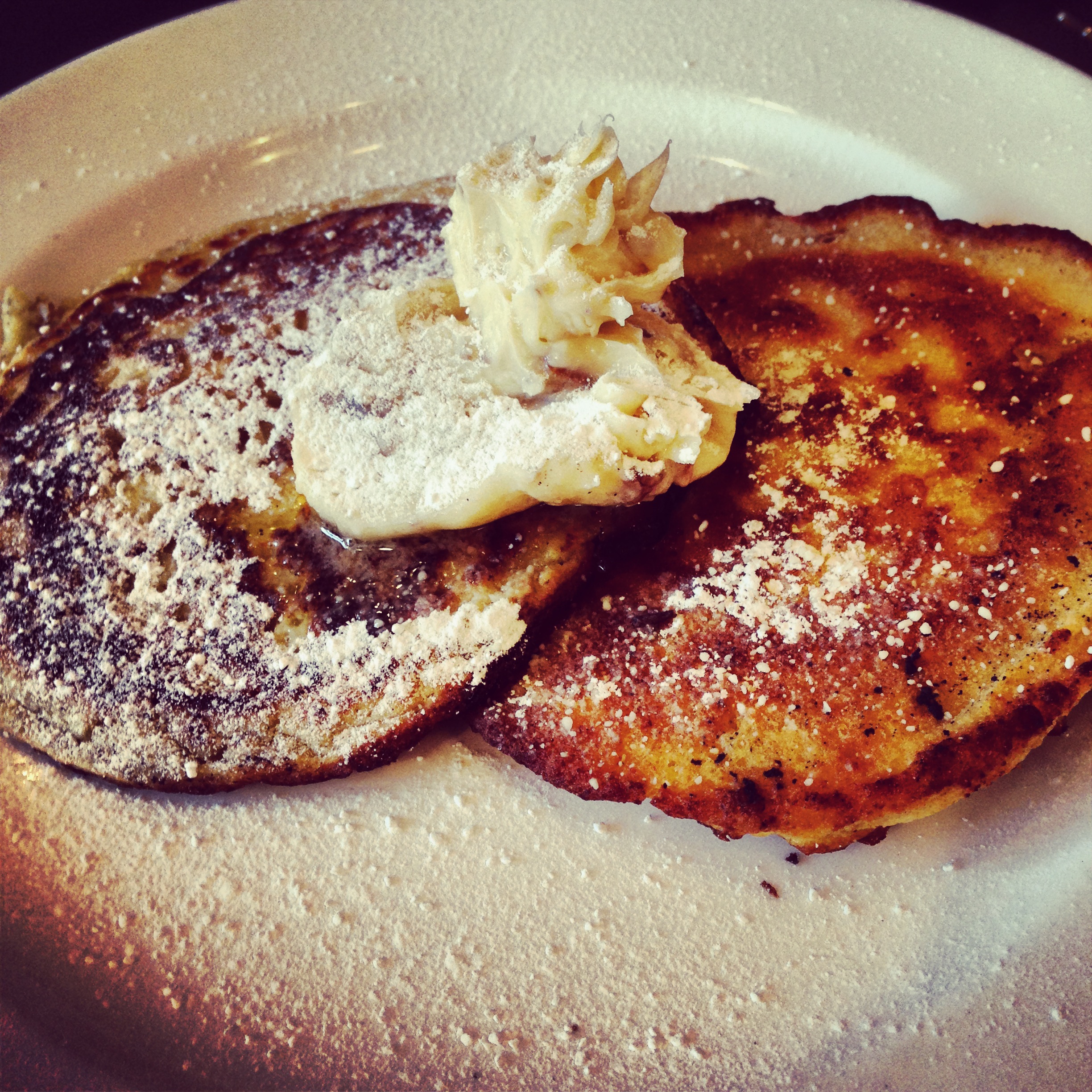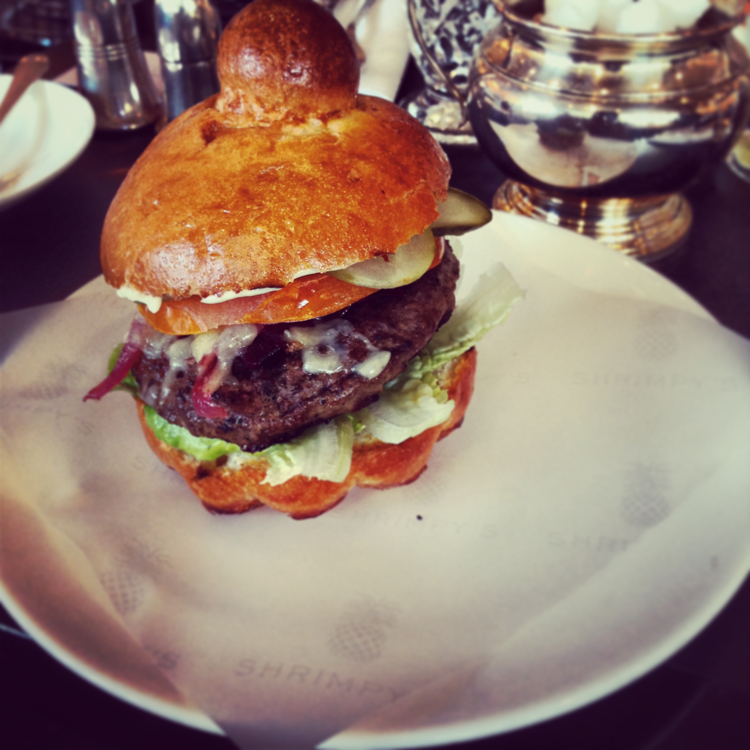 The soft shell crab burger was famous instantly, it even had its own twitter following, but with rumours that it had dropped in quality I decided to sample some of the other dishes available. From the brunch menu, I can recommend the Chilaquiles with chorizo. Although this was presented messily, a pile on a plate, it really was tasty, a spicier and more sophisticated version of nachos. The cheeseburger in a bonnet was good too, quite petite in size but perfectly cooked with a very soft sweet freshly baked brioche bun and a layering of delicious components on the flavoursome beef patty. We couldn’t resist something sweet to share, Ricotta hot cakes with pecan crunch butter seemed like the obvious choice. Perhaps the star of the meal, the pancakes were thick and airy dusted in icing powder with a dollop of caramelised nutty butter melting temptingly on top.