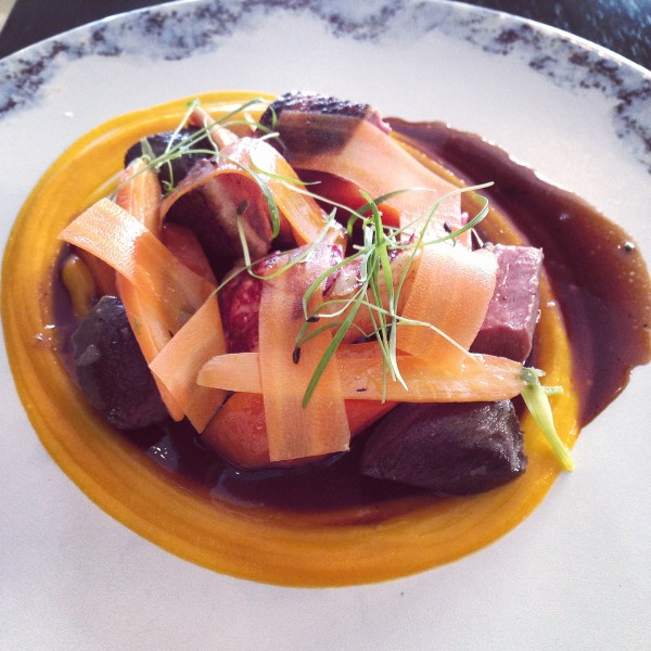 Our main courses were very decadent; Lobster, Duck breast, gizzard, carrot, anise and white port for my guest and Venison, Sweet potato, lentils, king oyster mushroom with pink peppercorn sauce for me. The venison was perfectly cooked and glistened with a coating of rich sauce; it was balanced with greenery and had a lovely range of textures. The lobster and duck was a feast for the senses, and an especially good choice for those greedy diners that can’t decide between seafood and meat. Both were cooked immaculately and dressed with a layer of thin carrots and garnished with a sprinkling of herbs.