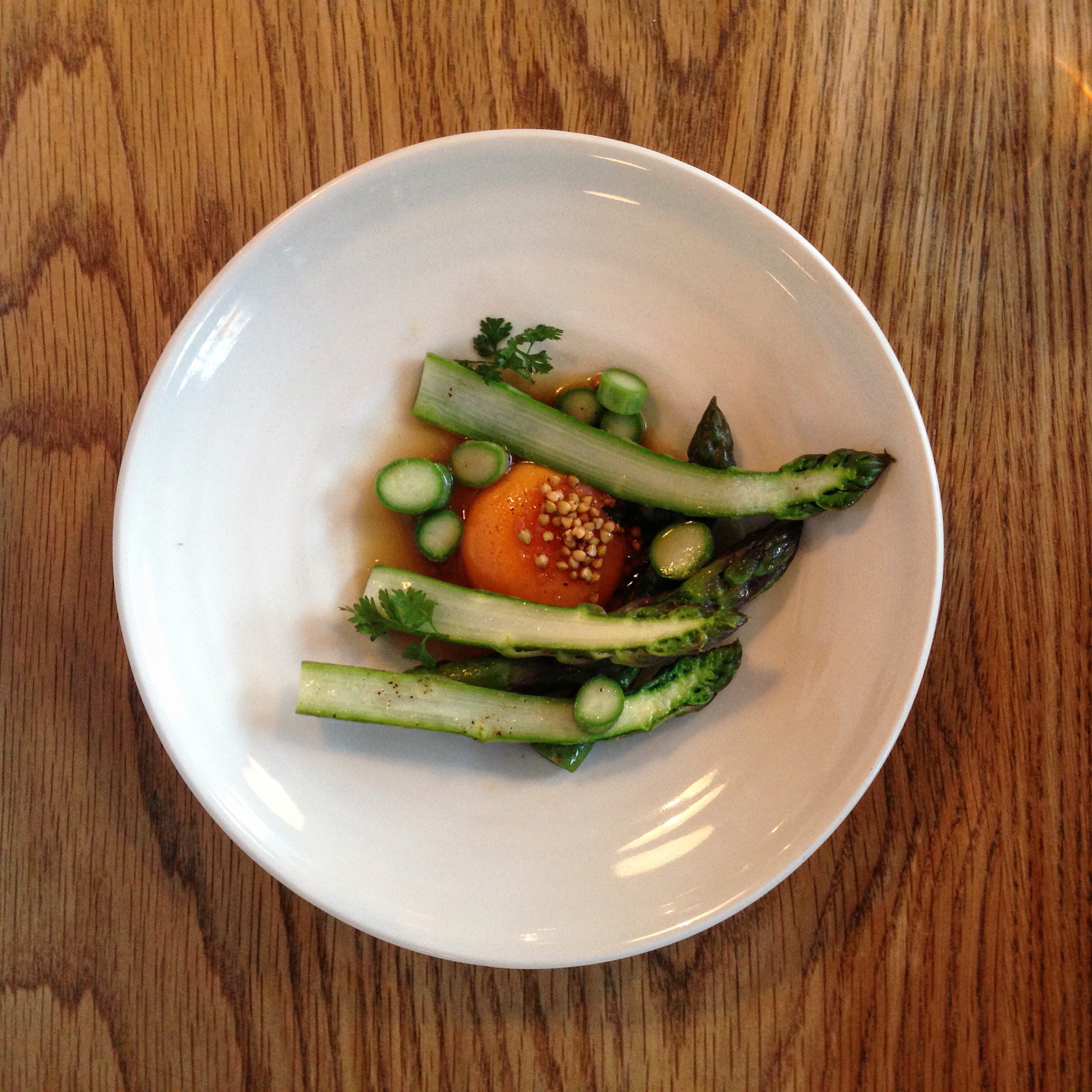 Asparagus, Burford Brown Egg & Buckwheat / Onion Broth & Ramson