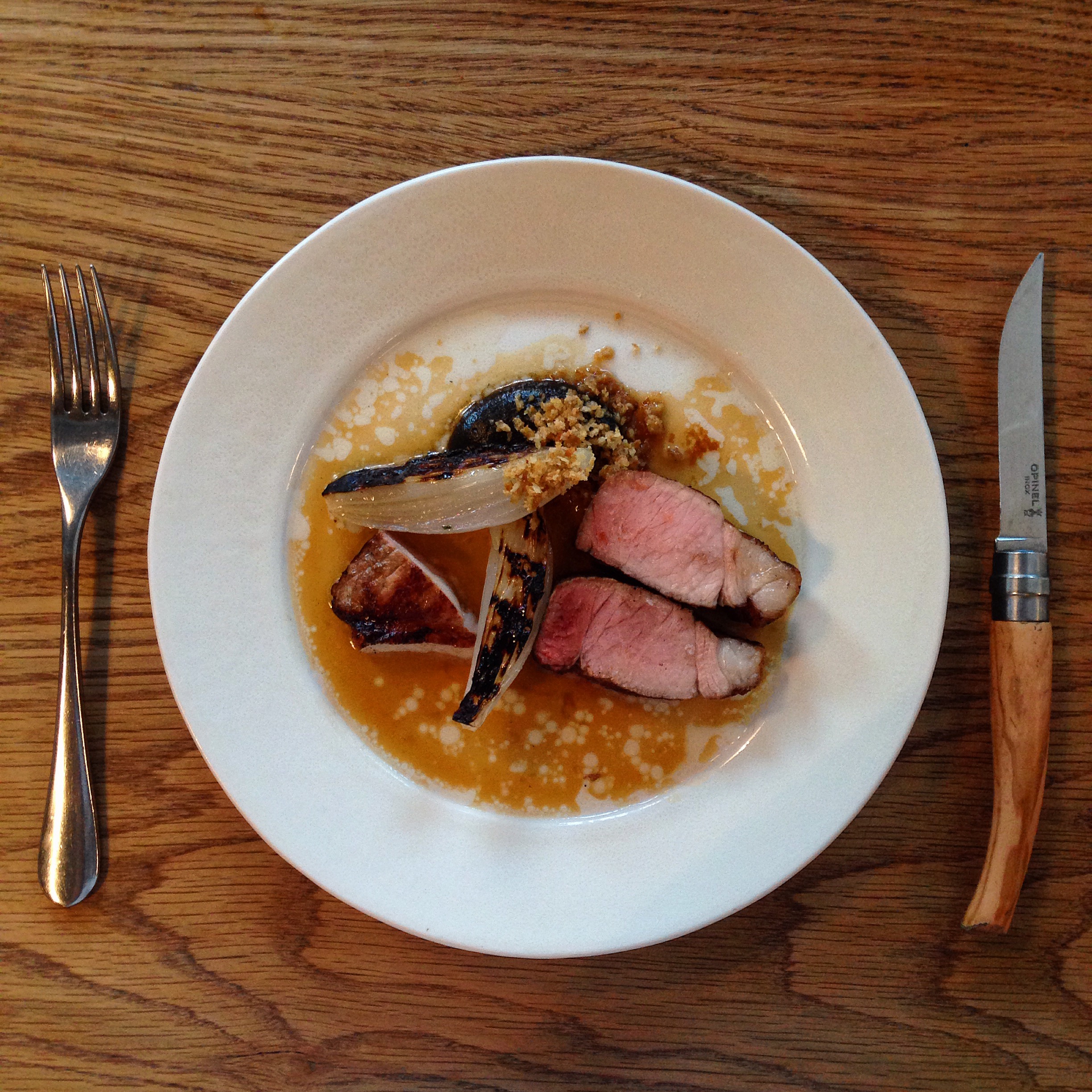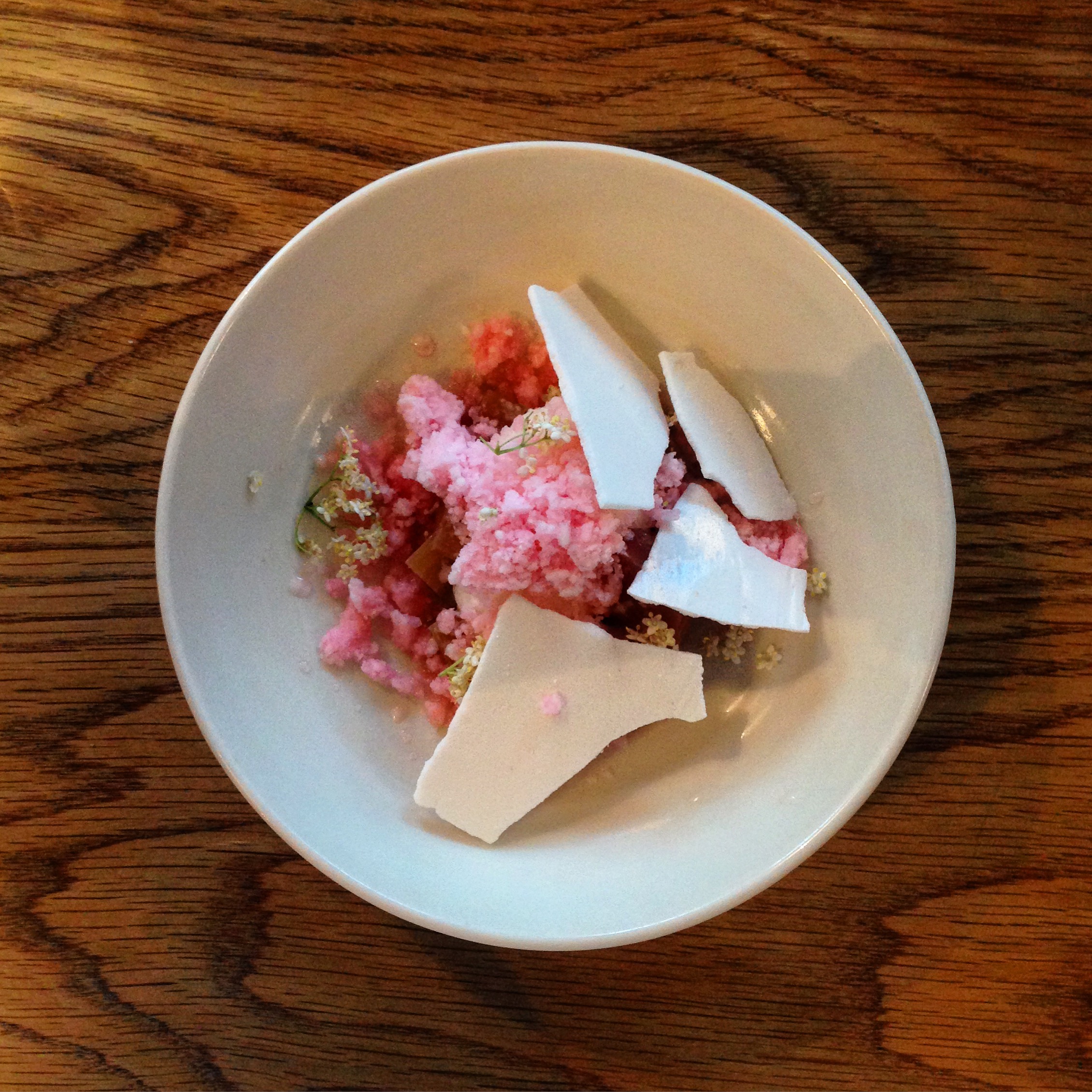 For me, the simplest dishes at Lyle’s were most thrilling. The onion broth was stunningly simple, an intensely flavoured soup with delicate ramson (a relative of chives with a garlic like scent) and chargrilled smoky soft onions. My next course was an airy, creamy delight, using little known cheeses. The Cauliflower was also lovely, gently cooked to give a sweet taste and served with a pristine white, meaty piece of fish. The Saddleback cut of pork was lean and carefully seasoned, paired with a sweet burnt apple puree and grilled onions. Silence fell over the table as we gobbled up every last bit. Dessert was a pretty pink assortment of textures and tastes, the granita made it refreshing and summery while the shards of powdery meringue added a sugary luxury.