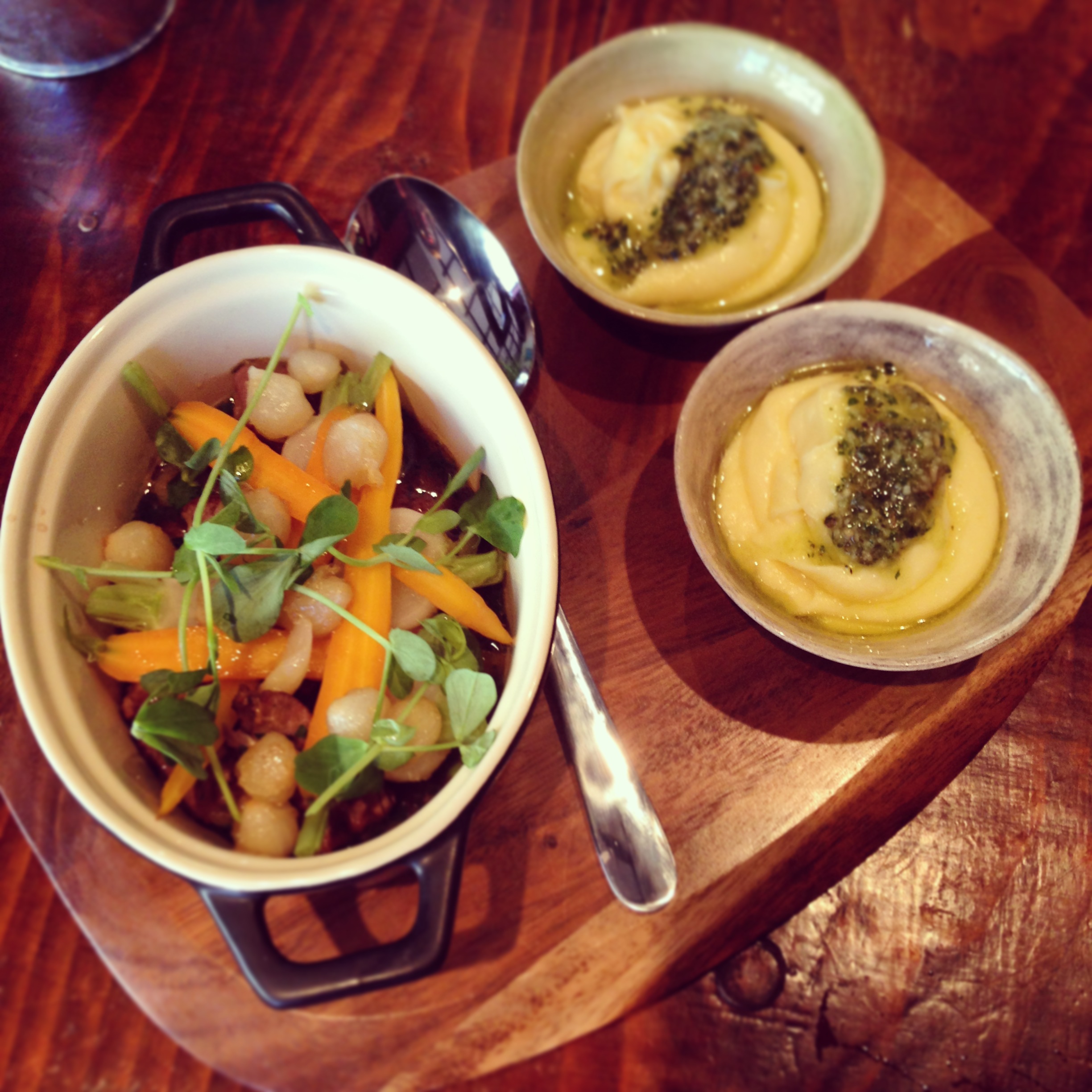 This rustic homely recipe arrived for two in a small casserole dish with side portions of the most wonderfully indulgent buttery creamed potatoes. The lamb was utterly divine, tender and comforting, cooked with spring vegetables and fresh herb garnish. I would love to learn to cook this for long lazy Sunday lunches.
