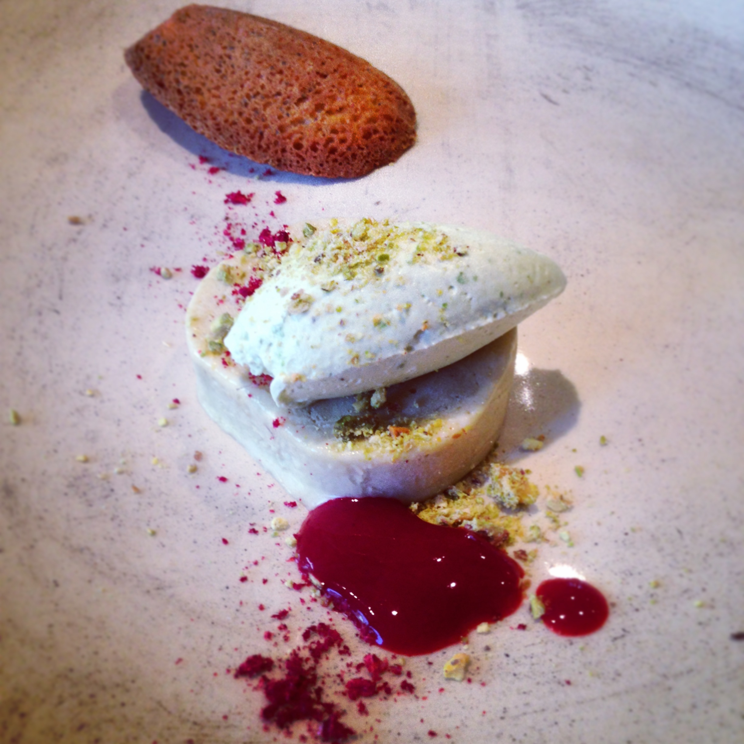 Dessert has never been my favourite course but Le Cochon Aveugle really excelled. A fresh and vibrant variety of ingredients combined to make a floral and irresistible dish. Warm freshly baked madeleine that crumbled gently in the mouth with airy pale green pistachio cream and sweet hard ice-cream.