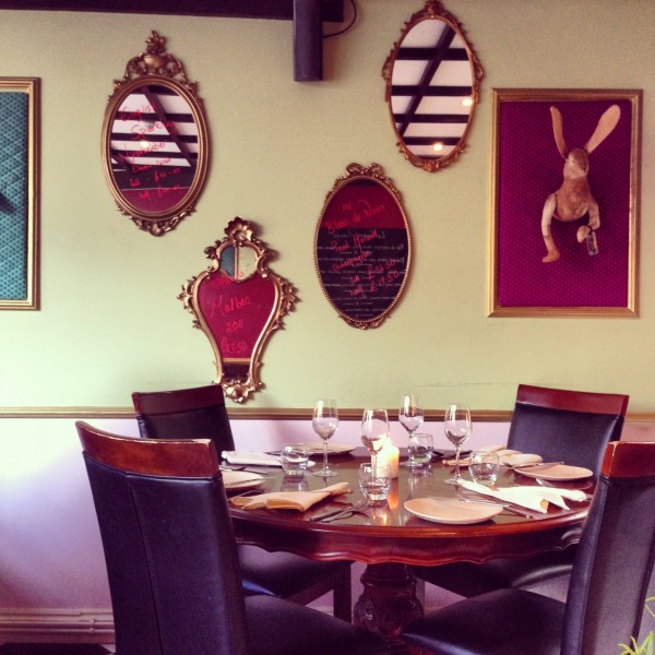 York is one of Britain’s most historic cities, known for its traditional English cobbled streets and tea shops. Le Cochon Aveugle defies the norm, a cosy and eclectic French eatery offering creative and delicious dishes, it is an incredibly exciting addition to York’s culinary scene. The pastel green exterior with pink neon lettering is instantly attention grabbing on the small street. In its early days the decor was the cause of much debate, with bras hanging from the ceiling. We didn’t notice any underwear on display but I was captivated by the quirky interior design; the black and white tiled floor, mismatched mirrors hanging on the walls and other odd artefacts adding character to the room. Croaky vintage jazz murmurs from the retro tin speakers.