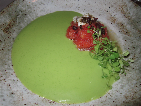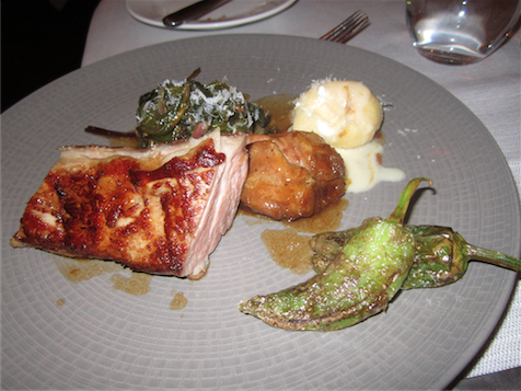 Mains were richer: Rose Limousin veal with wilted greens, padron peppers and buckwheat; and a wonderful grilled piece of beef with sweet como peppers, artichokes and young chard. The plates looked lovely, not too big with an attractive assortment of colours and thankfully few carbohydrates so the food remained summer-suitable. The beef was particularly tasty, with a soft and juicy texture and topped with an addictively salty aromatic jus.