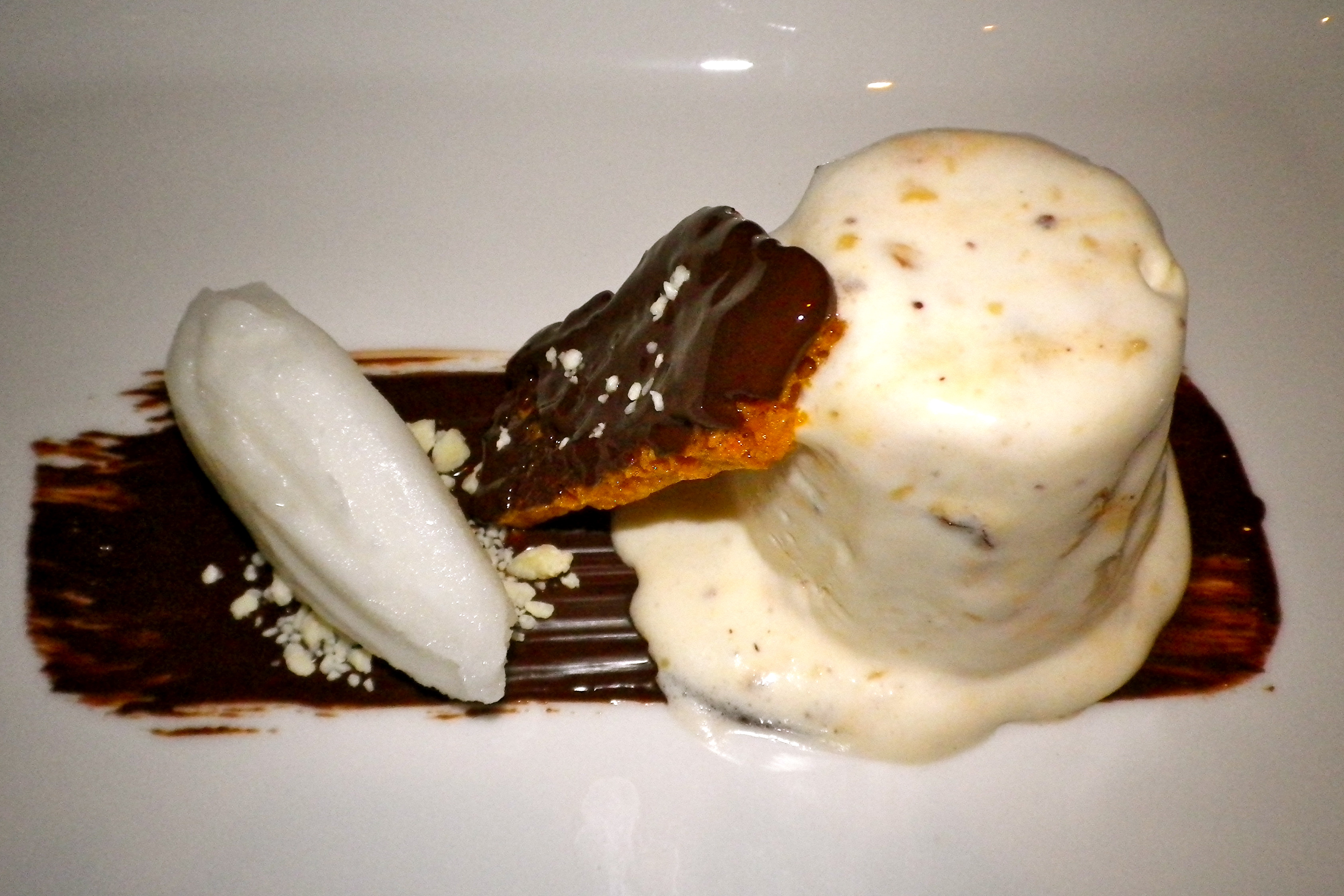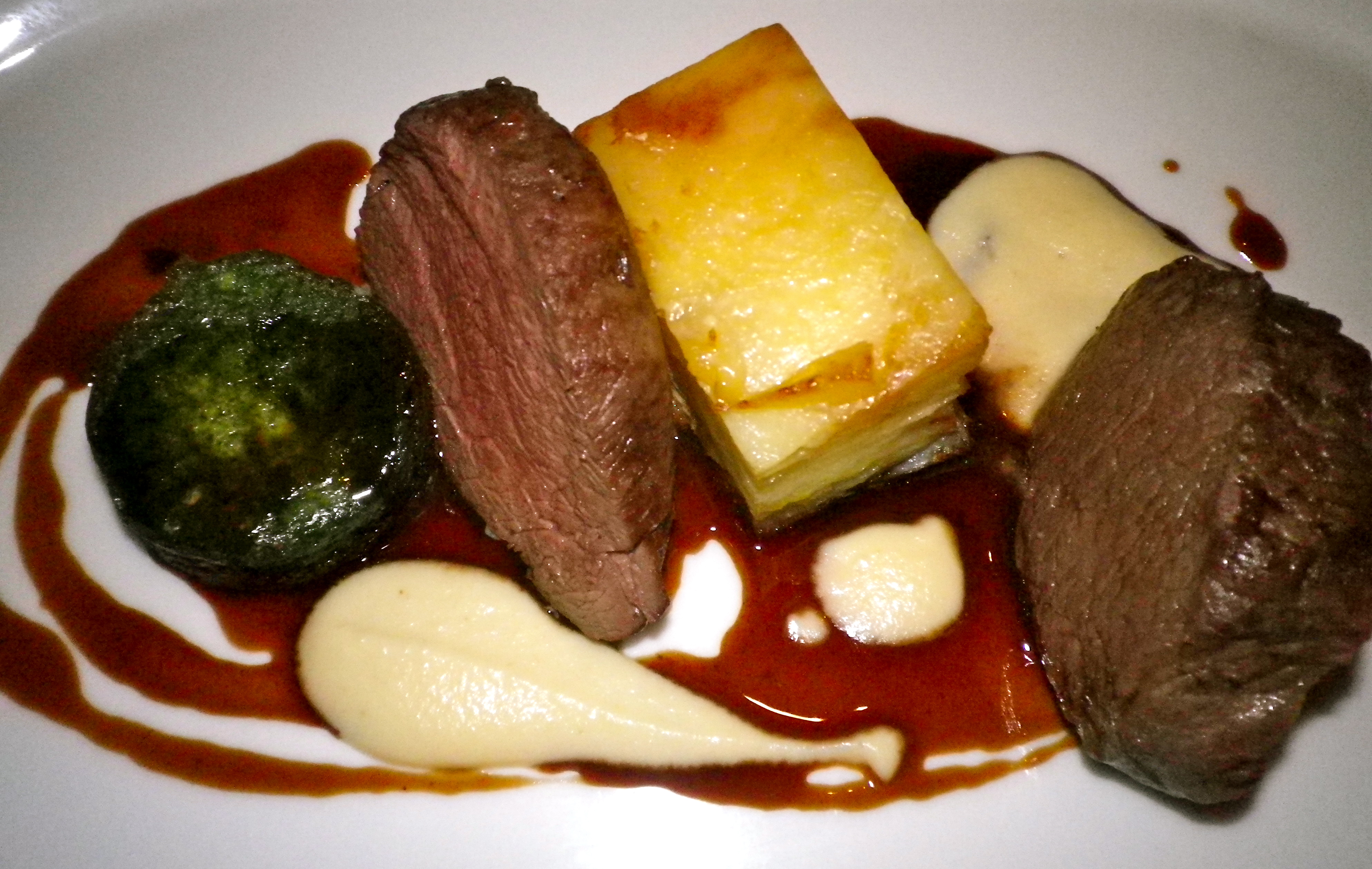 For mains we both ordered the irresistibly delicious Venison loin, tender and flavoursome and served with addictive horseradish dauphinoise potatoes, a slightly curious spinach mousse and the sweetest gravy. Embarrassingly our plates were scraped so clean that it is possible our waiter thought we’d licked them. The list of desserts featured most of my favourites, I had to resist asking for a taste of each pudding on offer! I chose the Panna cotta.